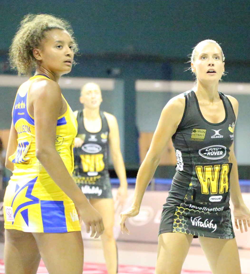 Changes: Q2: Drakeford-Lewis – bench to GA; Corbin – GA to GS; Lewis – GS to bench; J Shaw – bench to C; Pavelin – bench to WD; Ritchie – C to bench; Allison – WD to bench. Q3: Lewis – bench to GS; Corbin – GS to GA; Drakeford-Lewis – GA to bench; Ritchie – bench to C; J Shaw – C to WA; R Shaw – WA to bench; Allison – bench to WD; Pavelin – WD to bench.